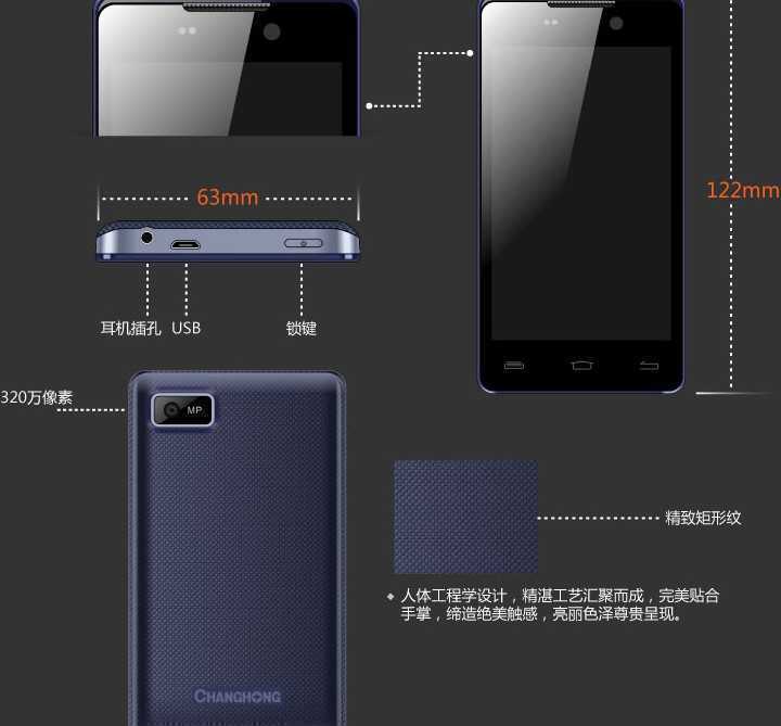 这一款长虹手机是今年上市的,是今年的最新款式之一,直板的机身早已成为如今的流行元素,3G的移动网络类型,上网速度就是快,4.0英寸的大屏幕让你享受手机看电视的乐趣,玩游戏更是超爽!(9mm~1cm)的超薄机身,拿在手里感觉很好,而且还很耐用!