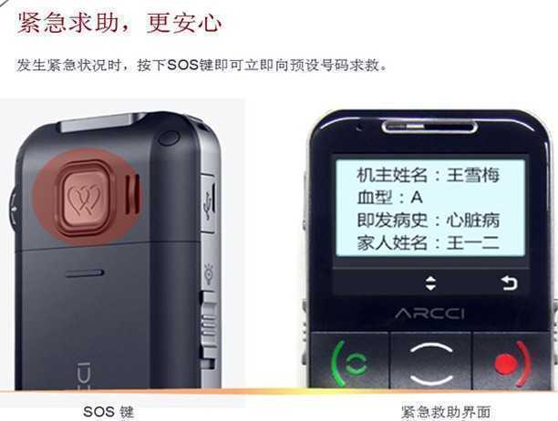 当发生紧急情况的时候,按下SOS键就可以向预设的号码进行求救,非常方便实用,很贴心的设计。