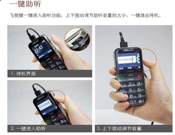 飞梭键一键进入助听功能,上下拨动可以调节助听器音量的大小,一键退出待机。