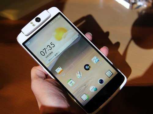 OPPO N1是OPPO前段时间发布的年度旗舰级手机,该机不仅仅是在硬件上有所突破,其具备的可206度旋转的镜头也是该机最大的亮点之一。OPPO N1采用的是超窄边框设计,看上去十分简约时尚。在机身背部还拥有一块小型触控板,在操控体验上十分不凡。OPPO N1搭载的是骁龙600四核处理器,加上5.9英寸IPS材质显示屏,无论是运行速度还是显示效果都极为出色。此外,该机采用了一颗2300万可206度旋转的镜头,在自拍和拍照上有了极大的提升,是款极具个性的手机。