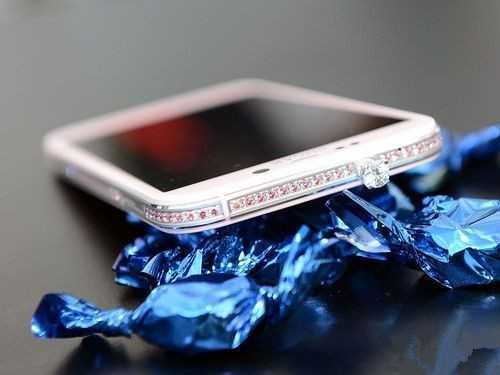 我们可以看到在阳光的照射下,边框上镶嵌的宝石熠熠生辉,十分夺目。在机身右侧的SIM卡槽上方刻有“Made with 129pcs SWAROVSKI PURE BRILLIANCE”(由129颗施华洛世奇炫美莹彩宝石制成)的字样。