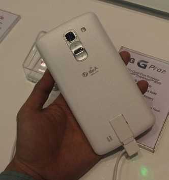 本次MWC会议,LG展出了之前发布的续作G Pro 2,搭载了5.9英寸的超大屏幕,采用了超窄边框设计,是目前市场中屏占比最高的智能手机,它也延续了G2的部分设计,采用后置式的电源及音量按键,系统搭载了Android 4.4系统,拥有2.3GHz的高通Snapdragon 800处理器、3GB RAM+16GBROM,性能强劲,此外还有光学防抖功能,还支持4K超清视频拍摄以及120Fps慢动作视频拍摄。