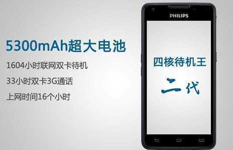 据可靠消息了解,这款飞利浦W6618将是飞利浦的第二代“四核待机王”产品,电池容量已经确定,将会达到5300毫安时,是去年W8510的两倍,在目前的安卓智能手机中处于绝对领先位置,同时每周只需充电一次,1604小时联网双卡待机,33小时双卡3G通话,上网时间16个小时,也远超目前市面上主打待机的其它产品。