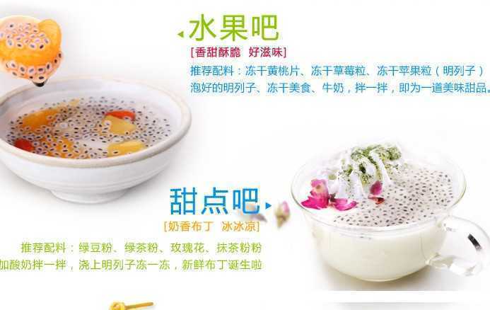 调理肠胃: 2、取半勺用冷开水或温水吞服,或者是凉水将明列子泡膨胀后食用,也可以将明列子泡搭咖啡、酸奶奶茶等,口味更佳哦!