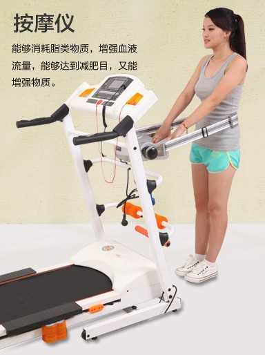 多功能跑步机独有的外观设计,5寸高清液晶蓝光触摸屏,大气更显高档,高品质触摸感,按键灵敏度高,可同时显示时间、速度、距离、卡路里、程式等,让你的健康更有保障。