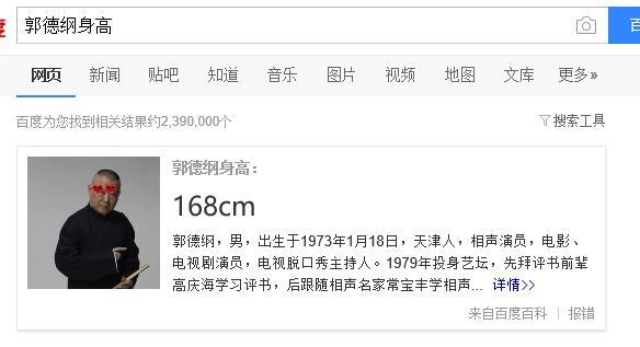 所以很多网友都说郭德纲是五十步笑别人一百步,自己的身高都成一个问题,还说别人的身高。其实小编还是认为不管艺人的身高多少,只要他们能带给我们笑声,身高是多少是问题吗?
