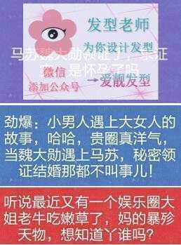 马苏曾与国家运动员孔令辉有一段长达11年的感情,2013年初结束,而关于马苏的感情归宿也是随着马苏的人气高升而备受大家关注。近日网上一直爆出马苏“老牛吃嫩草”:“劲爆:小男人遇上大女人的故事,哈哈,贵圈真洋气,当魏大勋遇上马苏,秘密领证那都不叫事儿!”