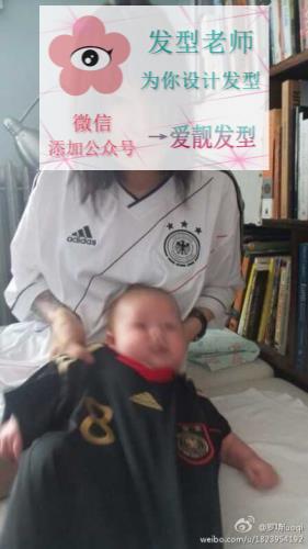 罗琦晒儿子近照,小家伙穿德国球衣超可爱