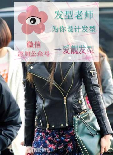 短裤的黑色皮衣性感帅气,斜拉链的设计非常特别,袖子部分和扣带处的拉链设计更添亮点,再搭配一条印花半身裙极具视觉效果,铆钉手拿包霸气外露,超大牌的一款造型!