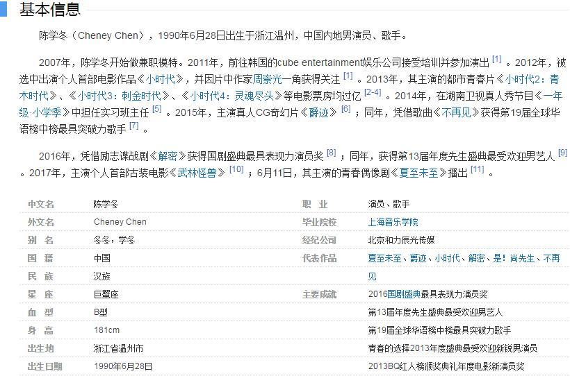 2013年,陈学冬参演的电影《小时代》《小时代·青木时代》,饰演周崇光、周崇光。