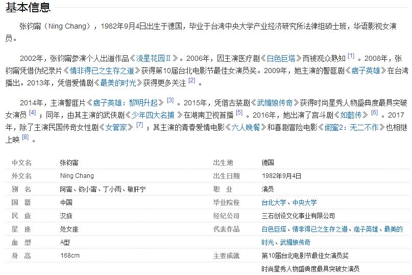 台湾女星张钧甯素有“台湾第一气质美女”之称,外貌和演技都十分出众,去年年底凭借出演《武媚娘传奇》中“徐慧”一角而走红内地,人气飙升,下面就和小编一起来了解一下她的个人资料。