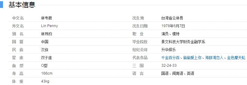以上就是,林韦君相关的详情资料,想了解更多明星咨询,可以关注爱靓网明星频道。