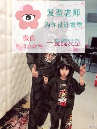 陆毅与贝儿拍合照,穿迷彩亲子装耍酷