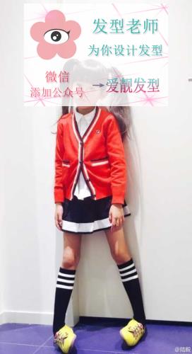 照片中中贝儿首次扎起双马尾,搭配红色开衫小黑裙,外加条纹短袜,神似美少女战士月野兔,表情鬼马逗趣萌翻众人,而贝儿的一双长腿更是分外引人注目,令人不禁感慨“陆家有女初长成”。
