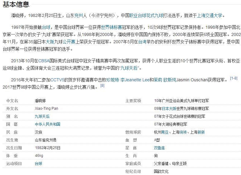 被誉为中国的“九球天后”潘晓婷的感情生活一直备受网友关注,下面一起去看看潘晓婷的男友等相关详情吧。