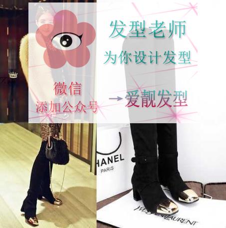 欧美风过膝长靴,金属头粗跟的设计十分别致,包腿过膝的长度勾勒出完美的腿部曲线,纤纤身段显露无疑,搭配一件高贵的皮草外套,打造出奢华的美感。