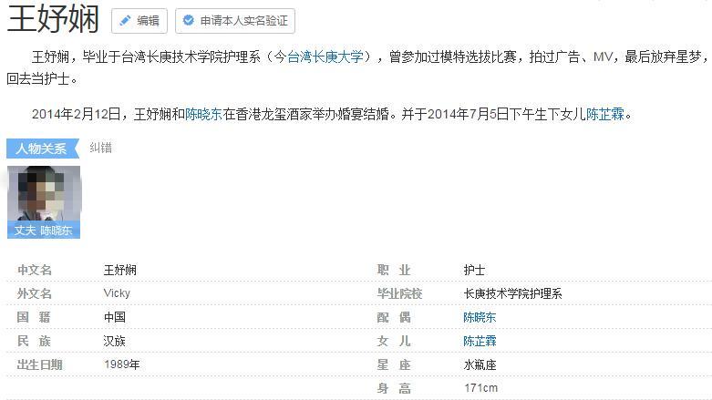 现年41岁的陈晓东于2014年1月在香港和12岁的台湾护士女友王妤娴完成婚礼。对于这位女友,一直以来都非常神秘。据悉,王妤娴曾做过模特,还上过相亲节目《有胆你就来》,最后回台中当护士期间客串偶像剧结识陈晓东,两人开始相识相爱,如今已有两个女儿。