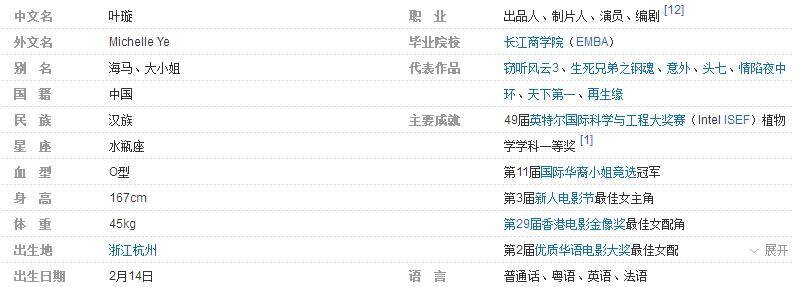 外文名:Michelle Ye