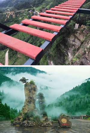 这个是一步踩空,就会直接下掉下百米高的山崖。如果在平地上,这个东西人人闭着眼都能走过,但是处于几百米悬崖之上的时候,走在上边,你的腿就会不禁地发抖,从而导致迈步艰难。而且闭眼睛也没用,恐惧感丝毫不会减弱。